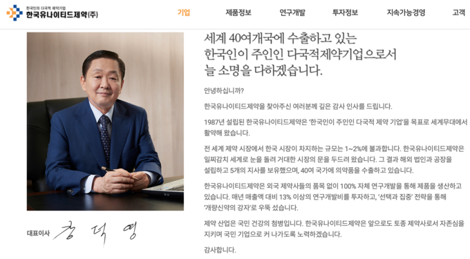 한국유나이티드제약은 세종특별자치시 전동면 노장공단길에 본사를 두고 있으며, 대표이사는 강덕영이다.