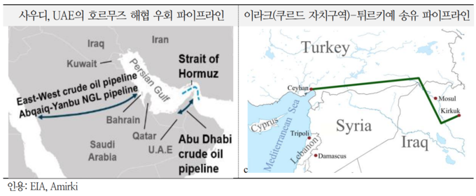 이라크 역시 북부 파이프라인을 활용할 수 있지만, 남부 바스라 원유를 북부까지 끌어올릴 내륙 수송망이 노후화되어 단기간 내 대규모 수송은 불가능한 실정이다.