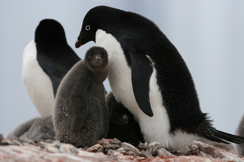 남극에서 가장 개체 수가 많은 아델리펭귄(약 500만 마리)은 독특한 집단생활로 번식을 이어간다. 수컷은 암컷을 유인하기 위해 부지런히 조약돌을 모아 둥지를 짓는데, 이 과정에서 돌을 차지하기 위한 치열한 경쟁과 도둑질이 벌어지기도 한다.