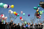 北朝鮮による拉致被害者家族らによる国際組織「拉致解決国際連合」主催の国際大会に出席した韓国、日本、タイ、ルーマニアの拉致被害者の家族らが京畿道・坡州の臨津閣で、被害者の早期帰国を願う手紙を風船にくくりつけ飛ばした。 聯合ニュース
