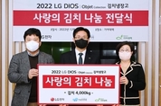 [KJtimes=김승훈 기자] LG전자가 소외된 이웃에게 따뜻한 마음을 전하기 위해 '사랑의 김치나눔'행사를 진행했다. LG전자의 '사랑의 김치나눔'행사는 올해로 10회째로, 올해는11월 한달 간 김치냉장고 'LG 디오스 오브제컬렉션 김치톡톡'가운데 행사 대상 모델이 한 대 팔릴 때마다 1만원씩 적립하는 방식으로 진행됐다. LG전자는 12일 서울 강서구에 위치한 '희망친구 기아대책'서울사옥에서 기부금 전달식을 열고, 김치냉장고 행사를 통해 모은 5000만원을 전달했다. 전달식에는 LG전자 한국영업본부 키친솔루션마케팅담당 윤성일 상무, 아동권리보장원 장화정 아동보호본부장, 희망친구 기아대책 유원식 회장 등이 참석했다. 기부금은 LG전자가 농어촌과의 상생 협력을 위해 1사1촌 자매결연을 맺은 전남 해남 김치마을에서 김치를 구입하는 데 사용된다. 구입한 김치는 자립준비청년, 아동양육시설, 공동생활가정 등에 전달될 예정이다. '자립준비청년'은 보건복지부 산하 아동권리보장원이나 LG전자와 희망친구 기아대책이 운영하는 심리상담 플랫폼 '마음하나'를 통해 김치를 신청할 수 있다. LG전자는 또 코로나19 영향을 받은 지난해를 제외하고 2012년부터 매년 사랑의 김치나눔