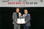 [KJtimes=김승훈 기자] KT가 노바테크와 함께 물류로봇 플랫폼 공동개발과 사업화에 나선다고 13일 밝혔다. KT와 노바테크 양사는 물류로봇 플랫폼사업 추진을 위한 업무협약(MOU)을 체결하고 ▲로봇 기반 물류 자동화 플랫폼 개발을 위한 공동 연구 ▲물류자동화 시스템과 로봇 관제/분석 시스템의 결합 ▲이기종 멀티로봇관리시스템(FMS)과 로봇제어시스템(RCS) 간 연동 개발 ▲ 창고관리시스템(WMS), 창고제어시스템(WCS)과 연계한 물류 E2E(End-to-End) 자동화 솔루션 개발 ▲국내 및 글로벌 시장 조기 진출을 위한 실증사업 등을 조속히 추진하기로 했다. 노바테크는 로봇 기반의 물류자동화, 디지털트윈 기술을 바탕으로 산업현장의 안전성과 생산성을 강화시킬 수 있는 혁신적인 제품과 서비스를 꾸준히 개발하고 공급해 온 회사다. 특히 현대자동차 터키·울산·싱가포르·광저우·조지아 공장과 한화비전 시카고 창고 등 여러 곳의 물류 자동화 시스템을 전문적으로 개발, 공급하고 있다. 이번 협약 체결에 따라 KT와 노바테크 양사는 공동 개발한 구축형(On-Premise) 기반 물류 자동화 시스템으로 먼저 국내 제조·창고 물류시장에 진입하고, 이종 멀티·군집