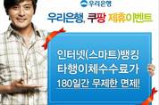우리은행이 인터넷 소셜커머스인 쿠팡(www.coupang.com)과 함께 종이 없는 인터넷전용 통장 확대를 위해 ‘우리닷컴통장’ 및 ‘iTouch우리통장’이용 고객에게 인터넷, 모바일 및 스마트뱅킹 타행이체수수료를 180일간 면제해 주는 이벤트를 실시한다. 21일 우리은행에 따르면 이번 이벤트는 쿠팡 사이트를 통해 21일 오전 9시부터 24일 12시(정오)까지 선착순으로 계좌이체 수수료면제 이용권을 0원에 판매하고 해당 이용권 구입 고객이 인터넷뱅킹에서 이용권 번호를 입력하면 입력일로부터 180일간 수수료 면제 혜택을 받을 수 있다. 이용권 등록을 위해서는 우리닷컴통장이나 iTouch우리통장과 같은 우리은행 인터넷전용 상품에 가입해야 하며, 인터넷을 통해 손쉽게 전환가입이 가능하다. 이 상품들은 기존의 종이 통장에 비해 금리 우대와 다양한 고객 혜택이 제공되며 종이