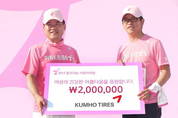 [kjtimes=김현진 기자] 금호타이어(대표 김창규)가 지난 7일 서울 영등포구 여의도공원에서 열린 ‘2012 핑크리본 사랑마라톤’에 참여하며 여성들의 유방 건강 지킴이로 나섰다. 한국유방건강재단이 주최하고 ㈜아모레퍼시픽이 주관하는 제 12회 핑크리본 사랑마라톤 행사에서 130여명의 금호타이어 임직원이 참가해 핑크색 셔츠를 입고 뛰며 건강에 대한 의미를 되새겼다. 이날 금호타이어는 자사 홍보부스에서 핑크리본 타이어 밸브캡을 판매하고 제품 판매금 전액을 한국유방건강재단에 기부했다. 구매자들의 자율적인 참여를 위해 판매가격은 별도로 정하지 않았다. 기부금은 평소 여성 유방 건강 캠페인에 각별한 관심을 갖고 있는 박세창 금호타이어 영업총괄 부사장이 직접 전달했다. 이외에도 무료 페이스페인팅과 일회용 타투 스티커 배부, 금호타이어 캐릭터인 ‘