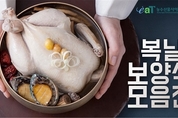 [KJtimes=박선우 기자]한국농수산식품유통공사(aT, 사장 여인홍)는 6일부터 오는 8월 16일까지 농수산물사이버거래소를 통해 ‘복날맞이 산지 우수상품 사전 예약판매’를 진행한다. 7일 aT에 따르면 이번 예약판매는 복날을 맞이해 수요가 늘어나는 산지 농축산물을 소비자에게 안정적인 가격으로 공급하고, 우수한 품질의 농식품 발굴과 우수 농가 홍보를 돕기 위해 기획됐다. 주요 상품은 유기농 영계(500g/6390원)와 유기농 통닭(800g/1만530원)으로 시중 가격보다 10% 이상 저렴하게 판매할 예정이며 구매량에 따라 백숙용 한방 부재료 증정행사도 실시한다. 무항생제 오골계(950g/9900원)와 간단히 데워 먹을 수 있는 레토르트 삼계탕, 오골계탕도 판매한다. 이와 함께 삼계탕 요리에 사용 가능한 완도산 전복, 후식으로 즐기는 제철과일 수박을 비롯해 아이스수박, 멜론, 켄탈로프멜론, 자두, 살구 등도 기존가 대비 약 10~20% 저렴하게 공급할 예정이다. 황형연 aT 사이버거래소장은 “복날을 앞두고 사전예약 형태의 공동구매를 통해 우수한 농산물을 저렴하게 구입할 수 있는 좋은 기회가 될 것”이라며 “앞으로도 지속적인 산지 직거래 확대를 통해 농가 소득