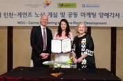 [KJtimes=서민규 기자]진에어가 대한민국 인천-케언즈 신규 노선을 개설하고 하늘길을 열었다. 28일 진에어에 따르면 이날 오전 서울 중구에 위치한 웨스틴 조선호텔에서 호주정부관광청 및 호주 퀸즈랜드주 관광청과 진에어 간 양해각서(MOU)를 체결했다. 이번 MOU는 인천-케언즈 노선 개설 및 공동 마케팅을 위한 내용을 담고 있다. 진에어는 이번 협약에 따라 인천-케언즈 장거리 노선을 오는 12월 14일부터 주 2회 스케줄로 약 2개월간 운항할 예정이다. 진에어는 국내 저비용항공사 가운데 유일하게 운영 중인 총 393석 규모의 B777-200ER 중대형 항공기를 인천-케언즈 노선에 투입해 약 1만2000여석을 공급할 계획이다. 케언즈는 호주 퀸즈랜드주 북부에 위치해 있으며 세계 최대의 산호초 지대인 그레이트 베리어 리프, 세계자연유산으로 등재된 데인트리 열대우림 등 관광과 휴양, 레포츠의 천국으로 유명한 곳이다. 특히 다이버들의 성지라고 불리는 그레이트 베리어 리프는 우주에서 유일하게 보이는 자연구조물로 BBC가 선정한 죽기 전에 가봐야 할 50곳 중 2위로 선정된 바 있다. 이곳은 또 세계관광협의회(World Travel and Tourism Counci