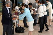 [KJtimes=서민규 기자]“일본 여행업계 대표단의 방문을 환영한다.”대한항공이 메르스로 위축됐던 일본 관광객들의 방한 수요 회복을 위해 적극적인 노력을 펼치고 있어 세간의 눈길을 끌고 있다. 4일 오후 대한항공은 인천국제공항 1층 입국장에서 일본지역 취항 도시 소재 여행사 대표와 언론인 등 팸투어 참가자들의 한국 방문을 환영하는 행사를 가졌다. 대한항공에 따르면 나리타, 나고야, 오사카 등 일본 7개 도시에서 온 128명의 일본 팸투어 참가자들은 4일부터 5일까지 1박2일간 서울 북촌 한옥마을 등지를 둘러보고 정동극장에서 공연을 관람할 예정이다. 뿐만 아니다. 대한항공은 오는 6일부터 말레이시아, 태국, 뉴질랜드, 호주, 베트남, 인도네시아, 싱가포르 등 7개국 약 100여 명의 여행사 관계자와 언론인을 초청해 한국의 맛과 멋을 알리는 팸투어를 진행할 계획