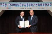 [KJtimes=서민규 기자]한국수출입은행이 코오롱그룹과 손을 잡았다. 전략사업에 대한 정보 교환과 맞춤형 금융지원을 주요 내용으로 하는 업무협약을 맺은 것이다. 10일 한국수출입은행에 따르면 이번 업무협약에 따라 앞으로 코오롱그룹의 해외 건설·플랜트사업, 해외투자사업 등에 초기 단계부터 신속히 금융을 지원한다. 아울러 글로벌 의약·바이오 사업과 환경·에너지 사업분야 등 미래를 대비해 추진 중인 전략사업에도 지분을 투자하고 금융자문을 제공한다. 한편 한국수출입은행과 코오롱그룹은 정례 협의채널을 구축하고 필요할 때 사업별 태스크포스(TF)도 설치할 방침이다.