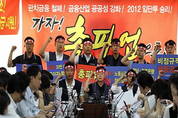 [KJtimes=심상목 기자]전국금융산업노동조합(이하 금융노조)가 총파업을 결의했으나 이를 돌연 연기해 그 배경에 관심이 모아지고 있다. 관련업계 등에 따르면 금융노조는 총파업을 하루 앞둔 29일 오후 긴급 대표자회의를 열어 파업을 연기하기로 했다. 금융노조는 관계자는 “메가뱅크 저지, 산업은행 민영화 저지, 농협 특별단협 체결 등 큰 성과를 거뒀다”며 “올해 총파업 핵심 사안 가운데 3대 핵심 사안이 해결돼 파업을 잠정 연기한다”고 밝혔다. 농협 노조와 사측은 특히 이날 오전 자율성 확보와 고용안정을 위한 특별단협을 체결했다. 성낙조 금융노조 대변인은 “파업 연기 결정은 정부와 사용자 측에 보내는 경고”라며 “20만 대학생 무이자 학자금 지원, 신규인력 채용 확대를 통한 청년실업 해소, 비정규직 채용금지 등 요구에 사용자 측의 태도 변화가 없으