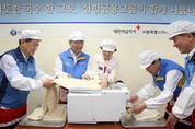 [KJtimes=심상목 기자]신한금융그룹의 전 그룹사 CEO들이 참여한 가운데 서울시 종로구 숭인동에 위치한 종로 중구 적십자 봉사관에서 ‘따뜻한 국수나눔’ 봉사활동을 실시했다. 24일 신한금융에 따르면 이날 한동우 회장과 그룹 사장단 20여명은 직접 밀가루를 반죽해 국수 가락과 빵을 만들고 포장해 인근 지역의 독거노인을 비롯한 저소득 가정에 전달했다. 행사 전에는 대한적십자사(총재 유중근)에 5000만원의 지원금을 전달했으며 이 지원금은 서울 뿐 아니라 지방에도 ‘따뜻한 국수나눔터’개설에 사용될 예정이다. 신한금융은 또 임직원의 봉사활동과 연계해 어려운 이웃을 위한 지속적인 국수나눔 활동을 펼칠 계획이다. 이날 행사에서 한 회장은 “신한금융그룹은 앞으로도 봉사활동 뿐만 아니라 ‘따뜻한 금융’을 통해 고객의 성공과 공동체의 발전에 실질적