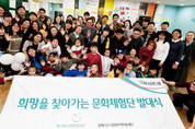 하나금융그룹이 문화 및 예술 분야의 학습기회가 적은 다문화 가정 아동들에게 각종 문화 체험 및 학습의 기회를 제공하는 ‘다문화가정 아동 문화체험 프로그램’을 시행한다. 3월부터 7월말까지 진행되는 이 행사는 하나금융 계열사 임직원들과 다문화 가정 어린이들을 2:1로 매칭한 ‘희망을 찾아가는 문화체험단’을 구성하여 조별로 활동하며 전시회, 음악회, 박물관, 스포츠 등 각종 문화 공간에 방문 및 행사에 참여하게 된다. 이번 프로그램에는 하나은행, 하나대투증권, 하나UBS자산운용 등 하나금융그룹 임직원으로 구성된 하나미소희망 봉사단원들과 서울 대방동에 소재한 ‘살레시오 다문화지역 아동센타’ 소속 초등학생이 참여한다. 하나금융은 이번 프로그램 활동에 필요한 비용을 전액 지원한다. 3월 1일 오후 하나은행 삼선교지점 2층에 있는 하나금융그