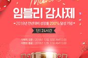 [KJtimes=이지훈 기자]코스메틱 브랜드 블리블리가 10일 하루 온라인 스토어를 통해 '2018 임블리 감사제' 이벤트를 진행한다. 이번 이벤트를 통해 최대 70% 할인이 제공된다. 이날은 14시부터 16시까지 두 시간 동안 진행되는 타임세일 이벤트를 진행한다. 또한, 임블리 앱에서 신규가입을 한 고객들에게는 임블리 공식 홈페이지 적립금 4,000원이 증정돼 당일 즉시 추가 할인이 가능하다. 이밖에도 감사제 행사 기간 동안에는 9만 원, 12만 원, 24만 원, 36만 원 이상 구매 시 사은품을 증정한다. 9만 원 이상 구매 시 ‘블리블리 립스틱’ 또는 ‘매트 립스틱’을 랜덤으로 증정하며 12만 원 이상 구매 시엔 ‘핑크 진정젤’과 마스크팩 1장(랜덤)을 제공한다. 24만 원 이상 구매 시 ‘산소 3초 토너’, ‘산소 물광 미스트’, 마스크팩 2장(랜덤)으로, 36만 원 이상 구매 시엔 ‘산소 3초 토너’, ‘산소 수분 에멀젼’, ‘산소 수분크림’(베리 모이스트/프레쉬 아쿠아 중 랜덤), 마스크팩 3장(랜덤)을 증정할 예정이다.
