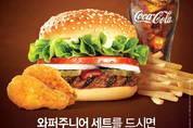 [KJtimes=장진우 기자]프리미엄 햄버거 브랜드 버거킹(대표 문영주)은 16일 '와퍼주니어 세트'를 구매하는 모든 고객에게 '윙킹' 2조각을 무료로 증정하는 프로모션을 오는 22일까지 진행한다고 밝혔다.이번 행사는 지난 12일에 출시된 새로운 치킨 메뉴 윙킹을 무료로 즐길 수 있는 기회로, 윙킹 2조각이 포함된 와퍼주니어 세트를 정가 8000원에서 약 30% 할인된 가격인 5600원에 즐길 수 있다.와퍼주니어 세트(가격 5600원)는 버거류인 와퍼주니어와 프렌치프라이(R), 콜라(R)가 함께 구성돼 있으며, 30년 동안 사랑받고 있는 와퍼주니어는 직화로 구운 순 쇠고기 패티에 신선한 양상추와 토마토, 양파 등의 채소가 어우러져 있는 버거킹의 베스트셀러 메뉴다.이와 함께 제공되는 윙킹은 바삭하고 쫄깃한 식감이 특징인 닭 날개로 버거킹에서 출시한 치킨 신 메뉴이다.윙킹 프로모션은