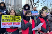[KJtimes=정소영기자] 호텔롯데산하면세점사업부인롯데면세점김주남 대표등임직원5명에 대한 노동조합및노동관계조정법(노조법)위반과관련해1월30일법원의1심 선고가 내려졌다. 이날 서울중앙지방법원(형사6단독재판장강영재판사)은 이들의 부당노동행위공모책임을인정하고 피고인김주남징역6월에집행유예2년,양희상벌금2000만원,박기남·박성훈각벌금500만원에처했다. 앞서2018년4월롯데면세점노동조합(위원장김금주, 이하 면세점노조)은민주노총서비스연맹에가입했다.한달뒤5월21일급작스럽게복수노조가만들어졌고이후열흘만에250명의조합원이 면세점노조를 탈퇴하고2노조에 가입하는일이벌어졌다.당시 경영지원부문 임원이던 김주남 대표는 면세점노조가 서비스연맹에 가입하려 하자 저지하려 한 혐의를 받아 재판에 넘겨졌다. ◆재판 결심 직전 부당노동행위 혐의 김주남 대표이사로 승진 3일 면세점노조는서울 중구롯데백화점 본점 앞에서 기자회견을 열고부당노동행위와 관련해 1심에서 유죄를 선고 받은 김주남 대표의 즉각적인 해임을 촉구했다. 면세점노조는 부당노동행위 혐의로기소돼재판을 받던 중에 대표이사 자리에 오른 김주남대표의해임은 물론 관련자들에 대한 강력한 징계를 요구하고 있다. 면세점노조는 "법원판결로인해롯데면세점