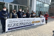 [KJtimes=정소영기자]쿠팡지부의단체교섭이4년넘도록지지부진한가운데지난2022년12월5일쿠팡은직고용상태인로켓배송기사쿠팡친구(전쿠팡맨)를대상으로자회사CLS(쿠팡로지스틱스서비스)로의전환동의서서명을받기시작해노조가거세게반발하고나섰다. 지난9일민주노총공공운수노조공항항만운송본부(이하노조)는서울잠실에위치한쿠팡본사앞에서 '쿠팡자회사전환반대규탄'기자회견을개최했다. 이날노조에따르면,지난해12월7일노조는신속한교섭체결을위해단체협약안의사측요구안전체를수용해양보하는대신근로시간면제와사무실제공을요구했으나지난100회차교섭석상에서사측은이마저도답변을거부했다. 노조는 "쿠팡은지난해12월5일부로노조와단한마디의상의도없이아예법인이다른자회사인쿠팡로지스틱스서비스로'쿠팡친구'노동자에대한책임을떠넘기려자회사전환동의서서명을받고있다"며 "사실상100회차가다된단체교섭에대한대답을자회사전환으로답한것이다"고비판했다. 이어"이는노동자들의호소를외면하고,우리노조의기본적인요구에도전혀합의할의지가없다는것이며지금까지쿠팡을이끌어온'쿠팡친구'를기만하는행위"라며"쿠팡은지금그대로의고용조건과근로조건및임금조건으로자회사전환이된다고주장하지만,그동안쿠팡의일방적인행태들을보았을때쿠팡을신뢰할수없다"고일갈했다. 그러면서 "노조는쿠팡의주장이사실이라면서면으