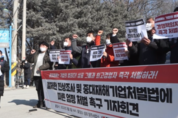 [영상=정소영 기자] [KJtimesTV=정소영 기자] 도시가스 점검 노동자들이 서울시에 “도시가스를 공공요금이라는 외피를 씌워 민간기업만 배만 불리는 허위 감독 중단하라”고 촉구했다. 민주노총 공공운수노조 서울지역공공서비스지부는 5월 24일 서울시청 서소문청사 앞에서 결의대회를 열고 “서울시 도시가스 고객센터에서 일하는 노동자들이 시가 정한 임금을 받지 못하고 있다”며 이같이 주장했다. 지부에 따르면 서울시가 산정한 검침 점검 노동자들의 기본급은 210만3800원이다. 그러나 실제 받는 월급은 7만1800원이나 적다. 이렇게 중간에 사라지는 돈이 1개 회사(서울도시가스)만 9억2900만 원이다. 여기에 기본급과 연결된 시간외수당, 연차수당, 퇴직금 적립분을 고려하면 일 년 동안 사라진 임금은 2000만 원을 훌쩍 넘는다. 이 같은 일이 공급사 전체에서 발생한다면 중간착취는 수십억 원 규모로 추정되고 있다. 서울시는 매년 3~6월 사이에 전문 회계법인에 용역을 맡겨 도시가스회사 공급비용 산정기준에 따라 서울지역 도시가스회사 5개 공급사 위탁업무를 수행하는 고객센터 64곳(2021년 5월 기준)의 총괄 원가를 산정하고 있