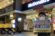 -맥도날드의 식자재 유통기간 스티커 갈이 규탄 디자회견.(사진=맥도날드에게 사회적 책임을 촉구하는 대책위원회) [KJtimes=정소영 기자] “햄버거병 사건으로 이미지에 타격을 입은 맥도날드가 고심 끝에 내놓은 개선책으로, 2019년 11월 11일 ‘주방 공개의 날’을 통해 2차 유효기간 제도를 대대적으로 각종 언론에 홍보했다. 당시 맥도날드는 2차 유효기간을 ‘원재료의 품질을 최상으로 유지하기 위해 기존 유효기간보다 더욱 강화해 관리하는 맥도날드 자체 품질관리 유효기간’이라고 설명했지만, 그 약속은 물거품처럼 사라지고, 이번에 내부고발을 통해 알려진 영상을 통해 보면, 2차 유효기간 스티커 갈이는 이 대대적 홍보후 불과 한 달 뒤부터 시작 됐다. 시민을 상대로 사기행각을 벌인 것이다.” - 박창진 정의당 부대표 - "맥도날드는 국민 건강을 위협할 가능성이 농후한 식자재 유효기간 조작사건을 책임있게 해결하는 상식적인 대처 대신 공익신고한 알바노동자를 꼬리자르기식으로 징계하는 부정의하며 부당한 대처를 하고 있다. 맥도날드 본사는 최근 3년간 식재료 유효기간 조작 등 국민건강을 위협한 행위에 관한 책임회피를 멈춰야 한다. 이미 대책위에 추가적으로 신고된 유효기간