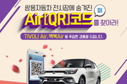 [kjtimes=정소영 기자] 쌍용차(대표이사 최종식; www.smotor.com)가 티볼리 에어 출시를 기념해 고객 감사 ‘슈퍼 페스티벌(Super Festival)’이벤트를 개최한다고 14일 밝혔다.전국 전시장에서 실시하는 QR코드 이벤트 참가를 원하는 고객은 오는 5월 15일까지 가까운 쌍용차 전시장을 방문해 스마트폰으로 QR코드를 스캔하면 모바일 응모페이지를 통해 이벤트에 응모 가능하다.이 중 추첨을 통해 ▲신차 티볼리 에어(1명) ▲맥북 에어(5명) ▲차량용 공기청정기(50명) ▲영화예매권 2매(200명) 등 푸짐한 경품을 증정하며, 당첨자 발표는 5월 23일 이루어지고 개별 통보한다.티볼리 에어를 시승할 수 있는 ‘꽃보다 에어(Air)’ 시승단도 함께 모집한다. 오는 5월 1일까지 쌍용차 홈페이지에서 응모할 수 있으며 추첨을 통해 차수 별로 15개 팀을 선발, 오는 4월 22일부터 5월 15일까지 총 4차에 걸쳐 운영한다. 당첨자 발표는 매주 응모 기간 다음 목요일(4차는 수요일) 이루어진다.또한 시승 후기를 5월 22일까지 SNS에 공유하면 우수 후기 심사를 통해 ▲아이패드 에어2(1명) ▲백화점상품권(5만원, 5명) ▲영화예매권 2매(54명)