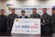 [kjtimes=정소영 기자] 한돈자조금관리위원회가 내달 3일 ‘삼삼데이(삼겹살데이)’를 맞아 지난 25일 경기도 고양 소재 육군 9사단(350kg)과 경남 창원 소재 해군 5전단에 삼겹살을 지원했다. 한돈자조금은 삼삼데이 하루 전날인 3월 2일, 경북 경산 소재 201 특공여단에도 삼겹살을 지원하는 등 총 1000kg의 삼겹살을 지원한다. 삼겹살은 우리나라 사람들이 가장 선호하는 대표적인 메뉴로 군내에서도 장병들이 가장 선호하는 메뉴 중의 하나다. 하지만 여건 상 부대 회식에서만 먹을 수 있는 귀한 음식 대접을 받는 게 현실. 국방부는 이러한 현실을 알고 지난 2011년부터 매월 넷째 주 금요일을 ‘삼겹살 데이’로 지정해 운영하고 있다. 하지만 장병 한 명이 먹을 수 있는 삼겹살의 양은 100g으로 한정돼 있고 조리상의 편의로 인해 삼겹살 구이를 쉽게 접하기 힘들다. 따라서 국방