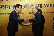 [kjtimes=정소영 기자] 이봉관 서희건설 회장이 서울대 경영대학 최고경영자과정 총동창회가 선정한 ‘제15회 서울대 AMP 대상’을 수상했다. 서울대 최고경영자 관정 출신자 가운데 국가발전에 기여하고 탁월한 경영 성과를 보인 우리 사회 최고의 리더를 선정하는 이 상은 지난달 28일 서울 소공동 롯데호텔에서 열렸다. 지난해 11월부터 1,2차 예비심사위와 본심사위 등의 과정을 거쳐 선정했으며, 서울대 AMP 총동창회 회장인 김종섭 회장, 서울대 AMP 명예회장 손경식 CJ그룹 회장, 남익현 서울대 경영대 학장, 이유재 AMP 주임교수 등 200여 명의 관계자들이 참석했다. 이 회장은 지난 1994년 서희건설을 설립한 이래 학교, 병원, 교회 건축 등 남이 어려워하는 분야에서 괄목할만한 성과를 거두고, 저소득 가정의 주거환경 개선과 청소년 장학금 지급 등 사회봉사에 앞장선 점이