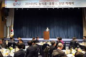 [kjtimes=정소영 기자] 한국농수산식품유통공사(aT, 사장 김재수)는 병신년(丙申年) 새해를 맞아 지난해 성과를 격려하고 2016년 단합과 발전을 기원하는 농식품・유통인 신년 하례회를 지난달 29일 양재동 aT센터에서 개최했다고 2일 밝혔다. 신년 하례회는 250여명의 농림축수산식품 유통인들이 자리를 함께한 가운데 창조경제 시대 정부의 농정 추진방향과 aT의 정책사업 추진전략에 대해 설명하고 의견을 교류하는 시간이었다. 이준원 농림축산식품부 식품산업정책실장은 이 자리에서 농업경쟁력 확보, 농가소득 증대, 농촌 복지 증진을 위한 주요 농정 운영방향을, aT는 정부정책을 성공적으로 추진하기 위한 농식품 유통・수급・수출・식품 관련 공사 주요 추진전략에 대해 설명했다. 참가자들은 북카페, 스마트 스튜디오, 비전전시관 등 aT가 역점을 두고 추진 중인 수도권