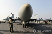 한.미 양국이 29일 서해상에서 실시한 연합훈련에서 미 항공모함 조지워싱턴호(9만7천t)에 탑재된 각종 함재기가 총출동한 가운데 다양한 고강도 전술훈련을 벌이고 있다. 서해상 사진공동취재단=연합뉴스