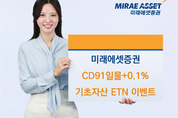 [KJtimes=김지아 기자] 미래에셋증권이 CD91일물 금리를 기초자산으로 하는 상장지수증권(ETN) 매수 이벤트를 실시한다. 미래에셋증권은 26일 '미래에셋 CD금리 플러스ETN(520094)' 매수 고객을 대상으로 경품 이벤트를 진행한다고 밝혔다. 이벤트는 5월 20일까지 이어지며, 해당 ETN을 매수한 고객을 대상으로 추첨을 통해 다양한 경품을 제공한다. 경품으로는 BBQ 치킨, 스타벅스 커피 2잔, 대한항공 50만 원 항공권 등이 마련됐다. 일부 이벤트는 미래에셋증권 계좌가 아닌 타사 계좌 보유 고객도 참여할 수 있다. 자세한 내용은 미래에셋증권 홈페이지와 모바일트레이딩시스템(MTS)에서 확인 가능하다. 이벤트 대상이 된 '미래에셋 CD금리 플러스ETN'은 CD91일물 금리를 목표 만기수익률(YTM)로 하는 상품이다. 기초자산인 CD 금리가 사전에 정한 연 1.0~4.0% 범위 내에 있을 경우, CD 수익에 0.1%의 추가 수익을 더하도록 설계된 것이 특징이다. 단일 기초자산 구조로 추가 수익을 추구하는 전략을 내세워 기존 유사 상품과 차별화를 꾀했다. 상품은 총수익지수(TR) 방식을 적용해 분배금을 전액 재투자하고 이를 지표가치에 반영한다. 월 분