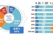 [KJtimes=조상연 기자]경기도민 10명 중 6명이 출범 1년을 맞은 민선7기 이재명호에 ‘잘했다’(60%)는 비교적 후한 점수를 줬다. 1일 도에 따르면 만19세 이상 경기도민 1,000명을 대상으로 민선7기 1주년 도정 운영에 대한 ‘도정현안 여론조사’를 실시한 결과, 전 연령 . 전 권역에 걸쳐 고르게 높은 평가를 받은 것으로 나타났다. 향후 도정 운영에 대해서도 도민 10명 중 7명이 ‘지금보다 잘할 것’(70%)이라고 응답, 민선7기에 대한 도민들의 높은 기대감을 보여줬다. 민선7기 2년차의 역점 정책 분야에 대한 물음에는 생애주기별 복지 정책(20%)을 가장 높게 꼽았으며, ▲경제·일자리 정책(16%) ▲교통 정책(12%) ▲환경 정책(10%) ▲부동산 정책(10%) 등의 순으로 응답했다. 민선 7기 첫 해 추진한 주요 사업들 역시 높은 점수를 받았다. 그 중 가장 높은 점수를 받은 것은 ‘24시 닥터헬기 사업’으로, 전문 응급의료 장비를 장착한 응급의료전용 닥터헬기 운영에 도민 10명 중 9명이 잘하고 있다고 응답했다. 이어 ▲경기도의료원 수술실 CCTV 설치 ▲체납관리단 ▲공공임대주택 20만호 공급 ▲산후조리비 지원 ▲미세먼지 저