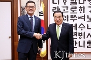 [kjtimes=견재수 기자]문희상 국회의장이 에릭 테오 신임 주한 싱가포르대사의 예방을 받았다. 문 의장은 7일 오전 의장집무실에서 접견한 에릭 테오 대사에게 "한국과 싱가포르는 1975년 수교 이래 긴밀한 우호협력을 지속해 왔고, 이제는 가장 선진적인 협력을 진행해 오고 있는 신남방정책의 핵심 파트너"라고 친밀감을 전했다. 이어 "앞으로도 양국이 다양한 분야에서 상생하며 공존·번영하길 바란다"고 덧붙였다. 이날 예방에는 김형길 외교특임대사, 박희석 국제국장 등이 함께했다.