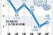 統計庁が30日に発表した8月の産業活動動向によると、同月の鉱工業生産は前年同月比4.8%増だった。自動車や半導体は好調だったが、前月比では1.9%減少した。前月比での減少は7月に続き、2カ月連続となった。 現在の景気状況を示す動向指数循環変動値は、前月と同じ100.9で、今後の景気を予告する先行指数も前月と差がなかった。 製造業の平均稼働率は80.5%で、前月に比べ1.6ポイント下落した。 業種別の前月比生産は、衣服・毛皮(12.2%)、食料品(3.3%)などが増えたが、自動車(6.7%減)、半導体・部品(3.0%減)、化学製品(3.2%減)など主力製品群は減少した。 前年同期比では自動車(23.6%)、半導体・部品(7.0%)などで増加したが、映像音響通信(16.2%減)、電気装備(8.7%減)などは不振だった。 サービス業生産は前年同月比で4.8%、前月比で0.5%増加した。消費心理と直結する小売販売額指数は前年同月比5.2%増、前月比では0.2%減少した。設備投資は前年同期比3.7%減、前月比は1.3%増えた。