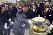 [KJtimes=김봄내 기자]문재인 대통령은 22일 오후 국립 서울현충원 현충관에서 열린 김영삼 전 대통령의 2주기 추도식에 참석했다. 문 대통령은 먼저 김 전 대통령 묘역에 헌화·분향하고 추도식장으로 이동했다. 이날 추도식에는 김덕룡 김영삼민주센터 이사장, 반기문 전 유엔 사무총장, 김수한 전 국회의장, 안철수 국민의당 대표, 유승민 바른정당 대표, 이정미 정의당 대표, 김 전 대통령의 차남 김현철 씨, 김대중 전 대통령의 삼남 김홍걸 씨 등이 참석했다. 자유한국당에서는 베트남을 방문 중인 홍준표 대표를 대신해 정우택 원내대표가 참석했으며, 최근 4박 6일간 미국 방문 일정을 소화하고 귀국한 더불어민주당 추미애 대표는 애초 참석할 예정이었으나, 피로 누적으로 불참했다. 지난해 열린 촛불정국 속에서 치러진 김 전 대통령의 서거 1주기 추도식에는 당시 유력 대선 주자이던 문재인 대통령을 비롯해 유족과 정·관계 주요 인사 2천여 명이 참석했으나, 박근혜 전 대통령은 추모 화환만 보냈다.