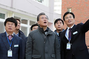 [KJtimes=김봄내 기자]문재인 대통령이 포항 지진 발생 9일 만인 24일 포항 현지를 방문했다. 문 대통령은 당초 지진 발생 직후 포항을 방문할 계획이었지만 지진 여파로 대학수학능력시험이 1주일 연기되면서 이날 현장을 찾았다. 문 대통령은 포항 방문 첫 일정으로 포항여고를 방문해 학생들을 위로하고 전날 수능시험을 치른 수험생들과 대화를 진행했다. 이어 문 대통령은 지진 피해가 심한 아파트를 직접 방문해 피해 및 복구 현황을 보고받는 한편 이재민들과도 직접 만나 애로사항을 직접 들을 방침이다. 또 이재민들이 임시거처로 옮긴 임대아파트를 방문해 이들을 위로할 예정이다. 문 대통령은 현지에서 이재민 및 자원봉사자들과 함께 점심 식사를 함께한다.