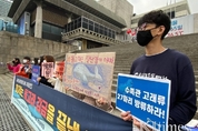 [KJtimes=정소영 기자]“거제씨월드는 고래들의 무덤이다. 거제씨월드는 고래를 바다로 돌려보내라.” 환경운동연합 바다위원회가 “거제씨월드와 울산시남구청, 한화, 롯데월드와 같은 수족관 기업들은 고래를 잡아다 콘크리트 수족관에 가두고 돌고래쇼를 하면서 돈을 번다”며 “거제씨월드에 있는 고래 11마리를 바다로 돌려보내라”라고 촉구했다. 바다위원회에 따르면 현재 전국 6개 수족관에 22마리의 고래가 갇혀있다. 구체적으로 큰돌고래 16마리, 흰고래 벨루 5마리, 남방큰돌고래 1마리다. 바다위원회는 “2009년부터 12년간 무려 37마리의 고래가 수족관에서 죽어갔다”며 “수족관은 고래들의 무덤이었다”고 지적했다. 이어 “특히 경남의 거제씨월드에서는 2015년부터 지난해까지 매년 1~3마리씩 그동안 11마리의 고래가 죽었고 국내에서 가장 많은 11마리의 고래를 가두고 있다”면서 “최근에는 제주 퍼시픽리솜에서 불법적으로 2마리의 큰돌고래를 옮겨왔다”고 비판했다. 바다위원회는 “이들은 고래를 사고파는 물건으로 취급한다. 이 때문에 많은 사람이 이런 기업들을 반생명적, 반사회적 기업으로 여긴다”며 “수족관 기업들은 모든 고래를 바다로 돌려보내야 한다”고 목소리를 높였다.