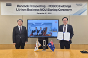 [KJtimes=김봄내 기자]포스코홀딩스가 호주 광산기업 핸콕(Hancock Prospecting)과 손잡고 이차전지용 원료 공급망 강화에 나섰다. 포스코홀딩스는 9일 핸콕과 리튬 사업 협력 업무협약을 체결했다. 한국과 호주를 영상으로 연결해 진행한 이날 체결식에는 포스코홀딩스 김준형 이차전지소재총괄(부사장)과 게리 코르테(Garry Korte) 핸콕 CEO 등 양사 경영층이 참석했다. 포스코홀딩스와 핸콕은 이번 업무협약으로 연산 3만톤 규모의 리튬 사업을 추진한다. 양사는 한국을 포함한 여러 국가들 중 최적의 리튬 공장 설립 후보지를 함께 검토할 예정으로 투자금액 등 상세내용은 추후 구체화해 나가기로 했다. 포스코홀딩스는 이번 협력으로 핸콕이 보유한 다양한 광산 자산과 연계해 미국 해외우려기관(FEOC) 규제로부터 자유로운 안정적인 리튬 원료 공급망을 추가로 확보하고, 리튬 광산, 염호에서부터 수산화리튬, 양극재, 리사이클링으로 이어지는 그룹 리튬 밸류체인을 한층 강화해 나갈 수 있게 됐다. 김준형 총괄은 “포스코홀딩스는 핸콕과 오랜 파트너십을 통해 신뢰를 쌓아왔다. 이번 리튬 사업 협력에서도 최적의 사업구도를 검토해 좋은 결실을 이루겠다”라고 말했