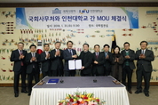 [kjtimes=견재수 기자]국회사무처(사무총장 김교흥)는 31일 인천대학교와 관·학 협력을 위한 양해각서(MOU)를 체결했다고 밝혔다. 김교흥 국회사무총장은 이날 국회에서 조동성 인천대학교 총장과 관·학 협력 MOU를 체결하고 양 기관 간의 구체적인 협력방안을 논의했다. 이번 MOU 체결은 양 기관 간에 2017년 4월부터 논의를 시작한 후, 지난해 6월에 국회에서 인천대학교 소속 교수진을 활용한 통계분석과정을 실시하는 등 지속적인 협력을 통하여 이루어진 것이다. 김 사무총장은 “이번 MOU 체결로 국회사무처와 인천대학교가 관·학 교류협력을 활성화할 수 있는 계기를 마련하게 됐다”며, “상호 교류·협력을 강화하고, 학위과정 등 관·학 협력 프로그램 운영, 국회사무처 재직 공무원 대학원 재학 시 인천대학교의 장학금 지원, 학술세미나·직무교육 및 제반자료 공동 활용 등을 추진하자”고 말했다. 이에 조 총장은 “국립인천대학교는 관·학 협력의 중심이 되어, 우수한 인적자원의 체계적 관리 운영을 통한 지역과 국가 산업 발전에 기여하는 세계일류대학으로 거듭나기 위해 모든 열정을 바치고 있다”며, “이번 국회사무처와의 MOU체결은 국회 구성원에게 학위 과정 제