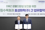 [KJtimes=김봄내 기자]효성화학이 산림청 국립수목원과 손잡고 비무장지대(DMZ) 생태계 환경 개선 활동에 나선다. 효성화학은 국립수목원과 26일 서울 서초구에 위치한 효성화학 본사에서 DMZ일원 산림생태계 복원과 생물다양성 보존을 위한 상호 협력 협약(MOU)을 체결했다. 협약식에는 효성화학 이건종 대표, 국립수목원 임영석 원장 등이 참석했다. 이번 협약은 ESG경영의 일환으로 자연 생태계 보호와 생물다양성 보존 활동에 참여하기 위해 체결한 것이다. 양사는 △DMZ불모지 및 산림 훼손지의 생태계 복원 △산림생태계 복원을 위한 자생식물 종자 확보 △생물다양성 보존 중요성에 대한 사회적 공감대 형성 등 ESG경영 실천을 위한 공동 협력을 추진한다. 이건종 효성화학 대표는 “기후변화로 인한 산림생태계의 중요성이 증대되는 가운데, 세계적 생태계 보고인 DMZ 보존에 적극 동참하고자 국립수목원과 뜻을 함께 하기로 했다”며 “앞으로도 생태계 및 생물다양성 보존을 위한 다양한 활동을 통해 ESG경영을 강화하겠다”고 말했다. 한편, 효성화학은 지주사를 비롯해 효성중공업, 효성티앤씨와 함께 환경보호 및 생물다양성 보존을 위한 사업을 지속 펼쳐왔다. 지난 2022