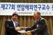 [KJtimes=김봄내 기자]LG의 '상아탑 후원'이 1989년 대학교수 해외연구 지원사업 개시 이래 27년째 이어지고 있다. LG연암문화재단(이사장 구본무)은 29일 오후 여의도 LG트윈타워에서 연암해외연구교수 증서수여식을 열었다고 30일 밝혔다. 이공계·사회과학은 물론 어문·역사·철학까지 다양한 분야의 대학교수 30명을 선발해 1년간 해외 연구비를 지원하는 사업이다. 구 회장은 "교수 여러분의 연구 역량이 높아지면 대학이 강해지고 우리 사회 지적 수준도 높아진다는 확고한 신념으로 해외연구를 후원해 왔다"며 "글로벌 경쟁력을 갖춘 교수가 많아지면 훌륭한 인재가 많이 키워지고 결국 교수의 능력이 대학과 인재의 경쟁력이 되고 나아가 산업과 국가경쟁력의 기반이 된다"고 말했다. 구 회장은 "LG는 열정·역량이 뛰어난 교수의 해외연구를 계속 후원할 것"이라며 "성과를