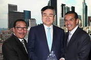 [kjtimes=キム・ボムネ記者] チョ・ヤンホ韓進グループ会長(中央)が17日(現地時間)、ロサンゼルス・ウェスティンボナベンチャーホテルで開かれた"トゥレジョス・オブ·LAアワード"授賞式で、ロサンゼルス地域社会の発展に寄与した功労で、今年の受賞者に選ばれた。"トゥレジョス・オブL.A.アワード"は、ロサンゼルススのオピニオンリーダーたちの集まりである"セントラルシティ協会(Central City Association)"が毎年ロサンゼルス地域社会の発展に貢献した個人や企業を選定してくれる賞だ。"セントラルシティ・アソシエーション"は、韓進グループがロサンゼルスのダウンタウンに新しいランドマークとして期待されるウィルシャーグランドホテルの建て替えを推進し、ロスアンジェルスに活力を吹き込んでいると趙会長を受賞者に選定した。また、グループの主力会社である大韓航空は、世界の航空会社の中で最も多くの太平洋横断路線を運航しながら、アジアとロサンゼルスを結ぶ橋の役割をしており、ロサンゼルスで、様々な社会貢献活動を繰り広げた事実も高い評価を受けた。チョ会長は"韓進グループが40年の間、ロサンゼルス地域の発展に寄与した努力が認められて嬉しい"と"ロサンゼルスは世界的な都市に位置した手助けをしたい"と話した。