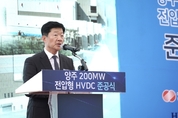 [KJtimes=김봄내 기자] 효성중공업이 국내 최초로 200MW급 전압형 HVDC(초고압직류송전) 기술 개발에 성공했다. 효성중공업과 한국전력공사는 9일 경기도 양주변전소에서 200MW 규모의 전압형 HVDC 변환설비 구축을 기념하는 준공식을 개최했다. 이날 준공식에는 우태희 효성중공업 대표, 이호현 산업통상자원부 에너지정책실장, 김석주 한국전기연구원 부원장, 서철수 한국전력공사 전력계통본부장을 비롯한 관계자 100여명이 참석했다. HVDC는 HVAC(초고압교류송전) 대비 먼 거리까지 전력손실을 최소화하며 송전할 수 있게 해주는 기술이다. 전압형 HVDC는 전류형 HVDC 대비 실시간 양방향 전력 제어가 자유롭고 계통안정화에도 유리해 재생에너지 연계가 가능하다. 태양광, 풍력발전 등 산지 및 해안가에서 생성한 신재생 에너지를 도심까지 효율적으로 이동시키는 데 필요한 핵심 기술이다. 한전 양주변전소에 설치한 200MW급 전압형 HVDC변환설비는 경기도 북부 지역 계통 안정화를 위해 사용된다. 200MW는 일반 가정집 48만 가구가 한 달간 사용할 수 있는 전력규모다. 효성중공업은 2017년부터 국책과제로 200MW 전압형 HVDC 개발을 시작해서