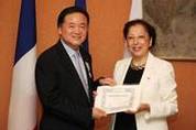 [kjtimes=キム・ボムネ記者] ホ・ヨンインSPCグループの会長がフランス政府から農業功労勲章シュバルリエを受けた。SPCは、ホ会長が2日午後、西大門区合同フランス大使館官邸でエリザベスロレン在韓フランス大使から勲章を受けたと発表した。ロレン大使は、"ホ会長は、フランスと韓国の食文化を組み合わせて新たなベーカリー文化を創造するなど、両国の友好増進に寄与した"と評価した。ホ会長は、1986年に本格的なフランス風のベーカリーを標榜した㈜パリクロワッサンを設立し、1988年にはパリバゲットをローンチして、国内のフランチャイズベーカリー業界1位ブランドに成長させた。去る4月にはベトナムにパリバゲット海外100号店を開いた。ホ会長は、先に2010年にフランスの直接投資を通じた雇用の拡大と、通常の増大に寄与した功労を認められ、フランス政府から功労勲章オフィサー時に受けた。