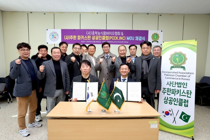 [KJtimes=김봄내 기자]사단법인 주)한 파키스탄 상공인 클럽(PCCK)과, 사단법인 충북 농식품 바이오협회가 2월 6일 업무협약을 체결하고, 상호간의 연계 강화를 통한 충청북도 및 파키스탄 농식품 ·바이오 산업의 상생발전을 위해 공동 노력해 나가기로 했다.