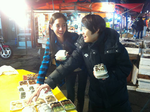 사진 속 효영과 다니는 함께 곱창, 순대볶음을 접시에 담아 주기도 전에 맛보고 있으며 또 혈기왕성하고 식욕이 왕성한 10대 다니와 20세의 효영은 족발까지 맛있게 먹고 있다. 또 효영과 다니는 집으로 가는 길에 유혹을 뿌리치지 못하고 후식으로 건강음식 떡까지 구입하며 즐거운 표정을 짓고 있다.