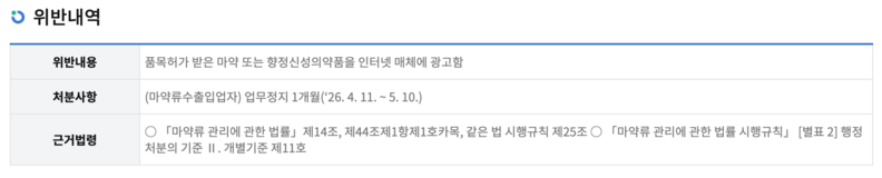 ◆마약류 광고 엄격히 제한되는 인터넷 매체에 게시