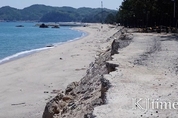 [영상=정소영 기자] [KJtimes=견재수 기자]강원도 삼척시 근덕면 궁촌리에 있는 ‘궁촌해수욕장’이 2011년부터 연안침식과 지반침하가 광범위하게 진행되면서 해안길의 절반가량이 붕괴돼 일부 구간의 출입이 통제되고 있다. 1km에 달하는 백사장 침식의 영향으로 해안길의 절반 이상이 침하 되면서 해변 배후에 조성된 울창한 송림(소나무숲)마저 위협하고 있다. 삼척시는 연안침식 방지를 위해 2017년 12월부터 연안정비사업의 일환으로 방파제 공사를 진행하고 있다. 해당 사업은 오는 2021년 12월 완공 예정이다. 본격적인 여름시즌이 시작되는 7월 해수욕장 개장을 앞두고 모래 절벽으로 변한 해변을 찾을 관광객들의 안전이 우려되고 있는 상황이다.