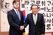 [kjtimes=견재수 기자] 문희상 국회의장은 지난 18일 오후 의장집무실에서 안드레이 포프코브(Andrei Popkov) 주한벨라루스대사를 만났다 이 자리에서 문 의장은 “한반도 평화프로세스에 대한 벨라루스의 관심과 지지에 감사드린다”면서 앞으로도 지속적인 관심과 지지를 당부했다. 이어 문 의장은 “벨라루스는 핵 보유국이었다가 성공적으로 비핵화를 이룬 것으로 알고 있다. 그런 경험을 북한과 공유하고 설득해주면 큰 도움이 될 것”이라고 말했다. 이에 포프코브 대사는 “벨라루스는 비핵화를 통해 안전이 담보되고 경제가 성장할 수 있었다. 이런 모범사례를 북한이 참고할 수 있도록 설득하는 노력을 하겠다”고 말했다. 이날 예방에는 이원욱 한·벨라루스 의원친선협회장, 한충희 외교특임대사, 박재유 국제국장 등이 함께했다.