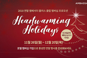 [KJtimes=유병철 기자] 앰배서더 호텔 그룹은 연말을 맞이해 유료 멤버십 ‘앰배서더 플러스 클럽’ 가입자에게 풍성한 혜택을 제공하는 하트워밍 홀리데이스 프로모션을 실시한다. 11월 26일부터 12월 20일까지 진행하는 이번 프로모션은 전국 18개 앰배서더 호텔에서 사용 가능한 멤버십 포인트 및 추첨 경품, 쿠폰이 들어있는 신년 캘린더 등 다양한 혜택이 마련된다. 앰배서더 플러스 클럽은 앰배서더 호텔 그룹의 유료 멤버십으로 전국 18개 앰배서더 호텔에서 사용 가능하며, 객실 최대 10%, 식음료 최대 20% 할인, 이용 금액 적립과 더불어 다양한 무료 이용권 및 할인권이 포함된다. 가격대에 따라 프리미엄, 아너스, 로얄로 구성되어 있다. 이번 프로모션 기간 중 앰배서더 플러스 클럽에 가입하는 고객을 위한 특별하고 다양한 혜택이 준비됐다. 첫째, 전국 앰배서더 호텔 18개 지점에서 사용할 수 있는 앰배서더 포인트를 추가 증정한다. 프리미엄 등급 가입 시 3만 포인트, 아너스 등급 가입 시 5만 포인트, 로얄 등급 가입 시 8만 포인트를 증정한다. 둘째, 기간 내 가입 고객 중 추첨을 통해 총 86명에게 풍성한 경품을 증정한다. 호텔 뷔페 2인 식사