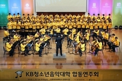 [KJtimes=윤철주 기자]KB금융그룹(회장 윤종규)과 사회복지법인 아이들과미래재단이 지난 20일 이화여자대학교 김영의홀에서 KB청소년음악대학 합동연주회를 개최했다. 이날 열린 연주회는 KB청소년음악대학 출신 청소년 120여명이 연주자로 나섰다. 이들은 지난 1년간 갈고 닦은 음악적 재능을 가족과 관객 앞에서 뽐냈다. 이번 연주회자리에는 성채현 KB금융그룹 상무, 박두준 아이들과미래재단 상임이사 등이 참석했다. 22일 KB금융그룹에 따르면 KB청소년음악대학은 청소년의 꿈을 응원하는 KB금융그룹의 대표적인 사회공헌사업이다. 이 사업은 전국 각지에서 청소년 120명을 선발해 각 지역별 6개 대학교(강원대학교, 경상대학교, 나사렛대학교, 상명대학교, 이화여자대학교, 조선대학교)와 연계를 통해 대학교수진의 수준 높은 음악교육을 지원하고 있다. 2013년 처음 진행된 KB청소년음악대학은 음악적 재능이 뛰어나지만 경제적인 어려움을 겪는 청소년들이 꿈을 이룰 수 있도록 예술교육과 아울러 인성교육도 지원하고 있다. 이 사업을 통해 현재까지 557명의 청소년들이 KB청소년음악대학의 교육을 수료했다. KB금융그룹 관계자는 "KB청소년음악대학을 통해 도전하고 노력했던 과정들이