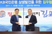 [KJtimes=장우호 기자]KB국민은행(은행장 윤종규)은 지난 10일 김포시와 ‘상생 발전을 위한 업무협약’을 체결했다고 밝혔다. 김포시 본청에서 열린 협약식에는 윤종규 KB국민은행 은행장, 이홍 경영지원그룹 대표, 김기헌 IT그룹 대표와 유영록 김포시장, 이홍균 부시장 등의 관계자들이 참석했다. 이번 업무협약을 통해 KB국민은행은 일자리창출, 자원봉사활동 등 지역사회기여 증대와 김포시 시정업무 지원 등에 공동 협력 관계를 강화해 나갈 계획이다. 또한 KB금융그룹은 차세대 IT인프라 구축을 위해 김포시 장기동 김포한강신도시 내 KB통합주전산센터를 오는 10월에 착공할 예정이다. 이날 협약식에서 유영록 시장은 “김포시에 KB통합주전산센터가 건립되면 일자리 창출 등 지역발전에 많은 도움이 되어 대단히 감사하다”며 “KB국민은행 협력사업에 대해 행정적 지원 등 적극 협조하겠다”고 말했다. 윤종규 은행장은 “KB통합주전산센터의 건립이 국내 최고의 스마트 도시인 김포시에서 이루어지게 된 것에 대해 매우 자랑스럽게 생각한다”며 “앞으로 협력파트너로서 지역사회 발전을 위해 노력하겠다”고 화답했다.