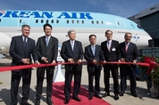 [KJtimes=장우호 기자]대한항공이 꿈의 항공기, 드림라이너(Dreamliner)로 불리는 보잉 787-9 차세대 항공기를 인수했다. 대한항공은 현지시간 22일 오전 미국 사우스캐롤라이나 소재 보잉 찰스턴 센터에서 조양호 한진그룹 회장, 조원태 대한항공 사장, 릭 앤더슨 보잉 상용기 동북아시아 세일즈 선임 부사장 등 양사 인사들이 참석한 가운데 대한항공 보잉 787-9 차세대 항공기 인수식 행사를 가졌다. 조원태 대한항공 사장은 이날 인수식에 참석해 “전 세계의 역량이 응집된 보잉 787-9은 효율적이면서도 고객 만족도를 극대화시킬 수 있는 최첨단 항공기”라며 “보잉 787-9 도입은 대한항공 기단을 한층 젊게 만드는 동시에 세계 항공업계를 선도하는 글로벌 항공사라는 비전을 달성할 주춧돌이 될 것”이라고 말했다. 대한항공은 차세대 첨단 기술이 집약된 고효율 친환경 항공기 보잉 787-9를 통해 승객들에게 차원이 다른 항공 여행 경험을 제공할 것으로 기대하고 있다. 기존 항공기가 백두산 수준의 기압(8000ft) 수준이었다면, 보잉 787-9 차세대 항공기는 한라산이나 지리산 수준(6000ft)의 기압을 유지한다. 또한 습도도 타 항공기보다 5% 이상 높아