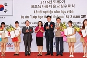 [KJtimes=장우호 기자]아시아나항공이 25일 베트남 하노이 하이즈엉성 3·8직업훈련센터에서 ‘2016 베트남-아름다운 교실’ 수료식을 가졌다. 이날 행사에는 오근녕 아시아나항공 경영관리본부장, 르엉 반 꺼우 하이즈엉성 부성장, 박상식 주베트남 대한민국대사관 공사, 장재윤 한국국제협력단 베트남 사무소 소장, 정권삼 굿피플 부회장 등이 참석해 교육을 이수한 현지 여성 111명에게 수료증을 수여했다. 학업 우수생을 선정된 여성에게는 포상도 함께 실시했다. ‘베트남-아름다운 교실’은 아시아나항공이 베트남 저소득층 여성들의 사회 진출을 돕기 위해 한국국제협력단(KOICA), 비영리단체 굿피플과 함께 운영하는 취업 지원 교육 프로그램이다. 지난해 10월 1차 교육 수료생 130여명 배출을 시작으로, 올해 2회째를 맞이했다. 교육 수료생들은 올해 5월부터 10월까지 하이즈엉성 3∙8직업훈련센터에서 서비스기초, 영어, 한국어, 컴퓨터, 회계 과목에 대한 교육을 받았다. 이들은 11월 취업 시즌이 시작되면 베트남에 진출한 한국기업 중심으로 취업에 나설 계획이다. 오근녕 아시아나항공 경영관리본부장은 이날 수료식에 참석해 “아시아나항공은 하노이, 호찌민, 다낭 등 베트남